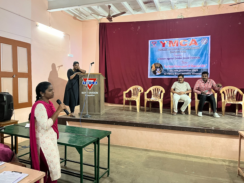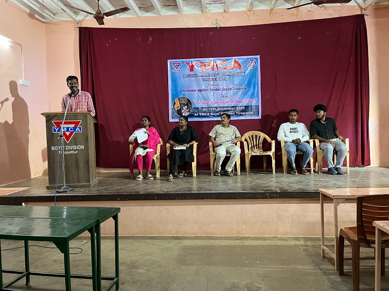 The YMCA Boys’ Division, Tirupattur, and Camp Centre, Yelagiri, India observed the 16 Days of Activism against Gender-Based Violence 2025 on 10th December 2025 at YMCA Tirupattur. The theme for this year’s campaign was “End Digital Violence Against All Women and Girls.”